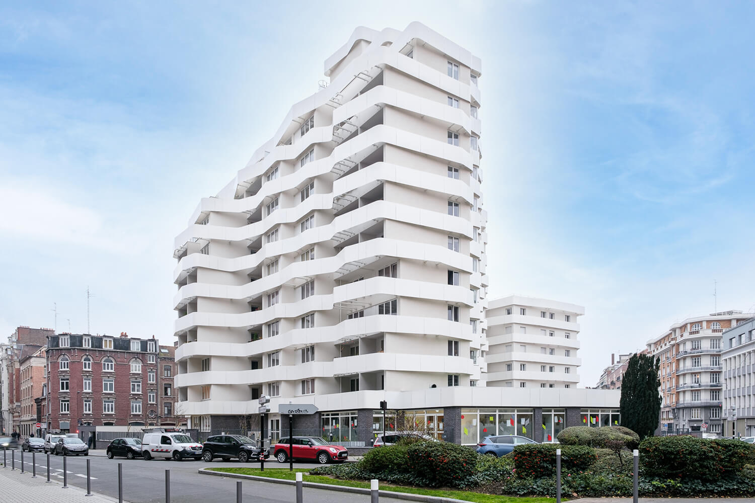 107 logements réhabilités + extension de bureaux et 23 logements